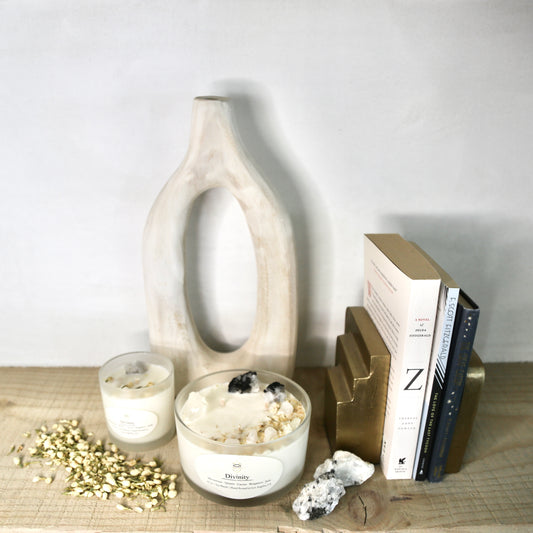 Divinity Intention Candle: Moonstone + Crystal Quartz