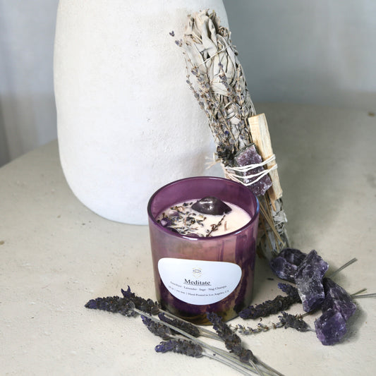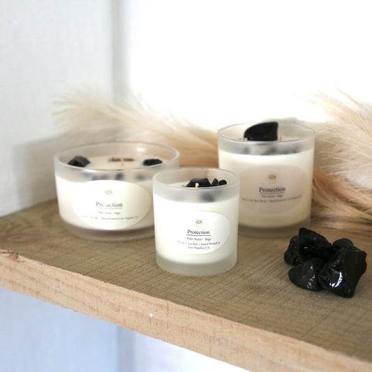 Protection Intention Candle: Obsidian + Palo Santo & Sage