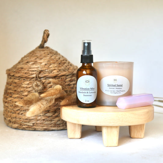 Spiritual Santal Intention Candle: Himalayan + Sunstone Crystals