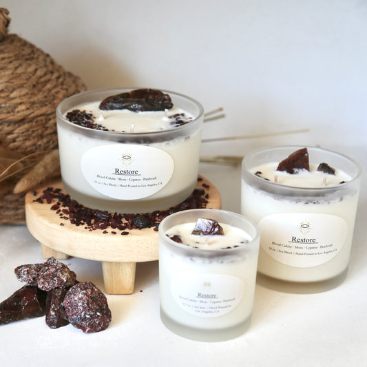 Restore Intention Candle: Bloodstone + Ruby Crystals