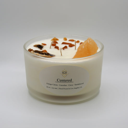 Centered Intention Candle: Orange Calcite + Carnelian Crystals